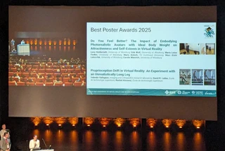 Erik and his co-authors Lena Holerrieth, Marie Fiedler, Mario Botsch, Marc Erich Latoschik, and Carolin Wienrich received a Best Poster Award for their work entitled "Do You Feel Better? The Impact of Embodying Photorealistic Avatars with Ideal Body Weight on Attractiveness and Self-Esteem in Virtual Reality" at the IEEE VR 2025 in Saint-Malo, France. The work originated from a student research project completed by Lena Holderrieth and was carried out within the HCI group at the University of Würzburg.